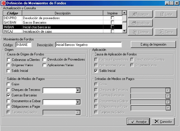 Cuentas Bancarias como ORIGEN y Saldo Inicial como APLICACION.