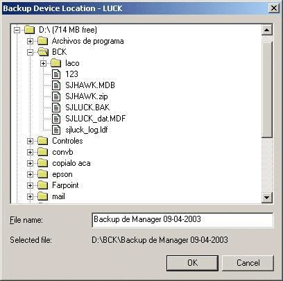 la unidad y carpeta en donde se ubicará la copia de seguridad,