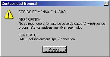 : NO SE RECONOCE EL FORMATO DE BASE DE DATOS