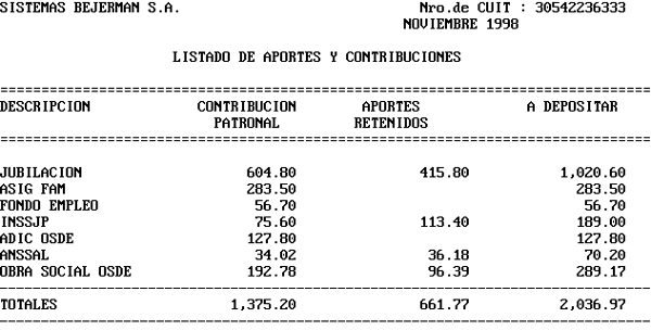 de Aportes y Contribuciones se observa el siguiente resultado: