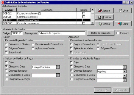 Sistema el ingreso del movimientos de fondos, se deberá seleccionar
