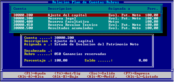 asignar una cuenta al Estado de Evolución del Patrimonio