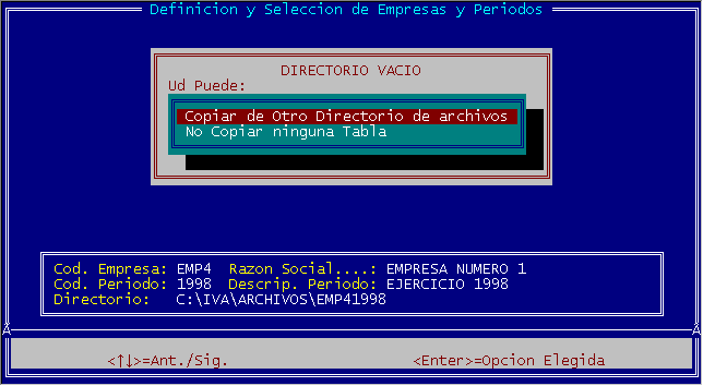 <Enter> hasta llegar a la opción DIRECTORIO DE DATOS