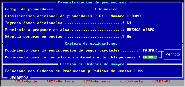 PARA EL FUNCIONAMIENTO DEL SISTEMA/PARAMETRIZACION DE PROVEEDORES.