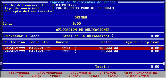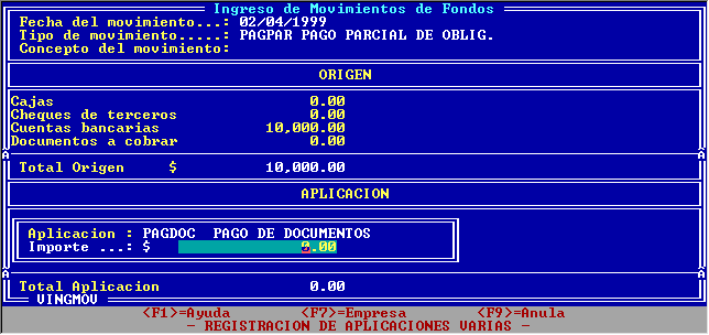 ello el tipo de movimiento PAGPAR, indicando en el origen los valores