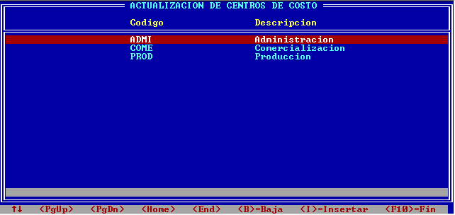 • Código: alfanumérico de 3 caracteres. La tabla de Centros de Costos se presentará ordenada por este dato.