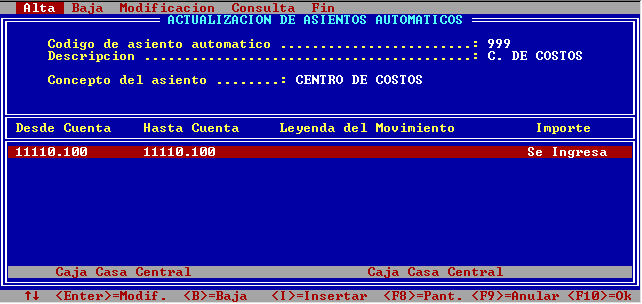 • Definir un asiento automático que permitirá la importación de asientos de Centros de costos, y posteriormente excluirlos de determinados informes del Sistema de Contabilidad General.