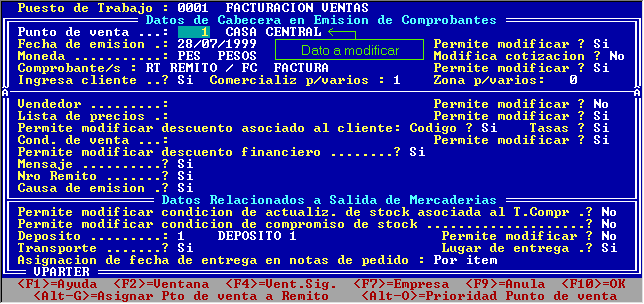 • Presionando <Alt> <G> se le asigna el mismo Punto de Venta a aquellos remitos que se emiten en forma simultanea con las facturas.