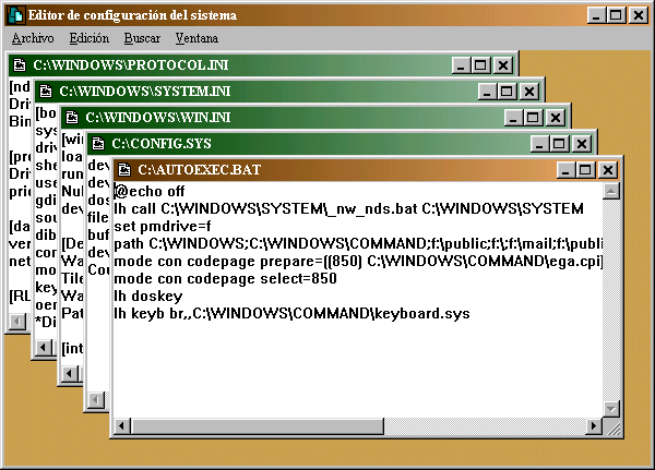la ventana correspondiente al archivo CONFIG.SYS deben agregarse
