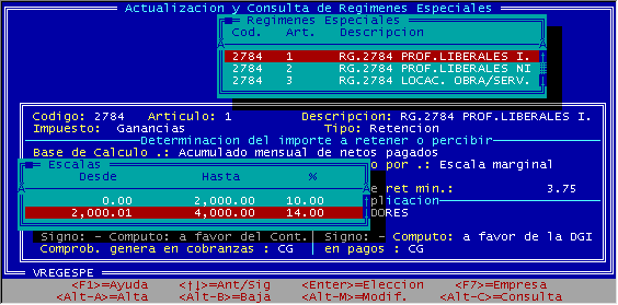 tal caso, se deberá ingresar a través de las opciones Tablas/Impuestos/Regímenes