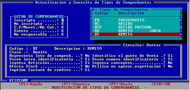 el talonario asociado al comprobante indicado. Presionando <F2>