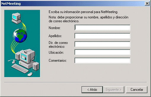 poder utilizar el programa NetMeeting, deben completarse los datos