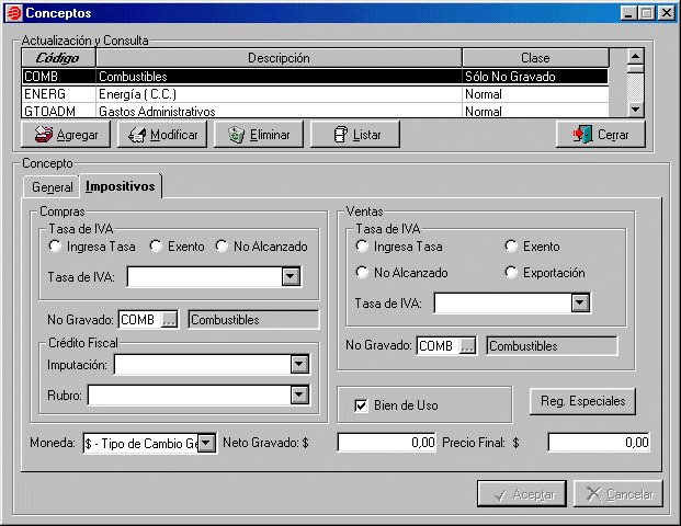 mayor información sobre cómo dar de alta un concepto no gravado,