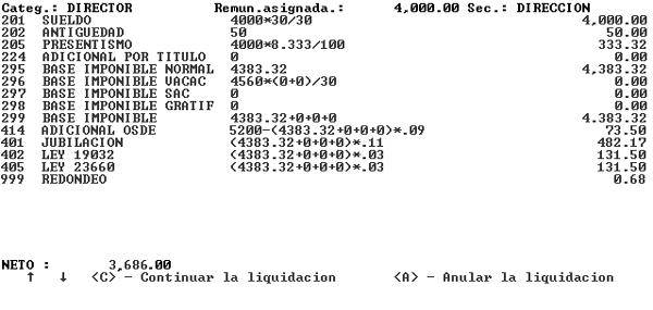 A modo de ejemplo se presenta una liquidación normal donde se observa el modo de cálculo aplicado.